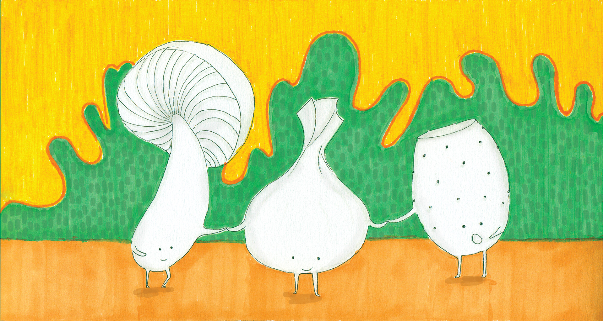 The title says it all. But did you ever feel like an onion in the middle of the desert holding a mushroom and a gooseberry?
